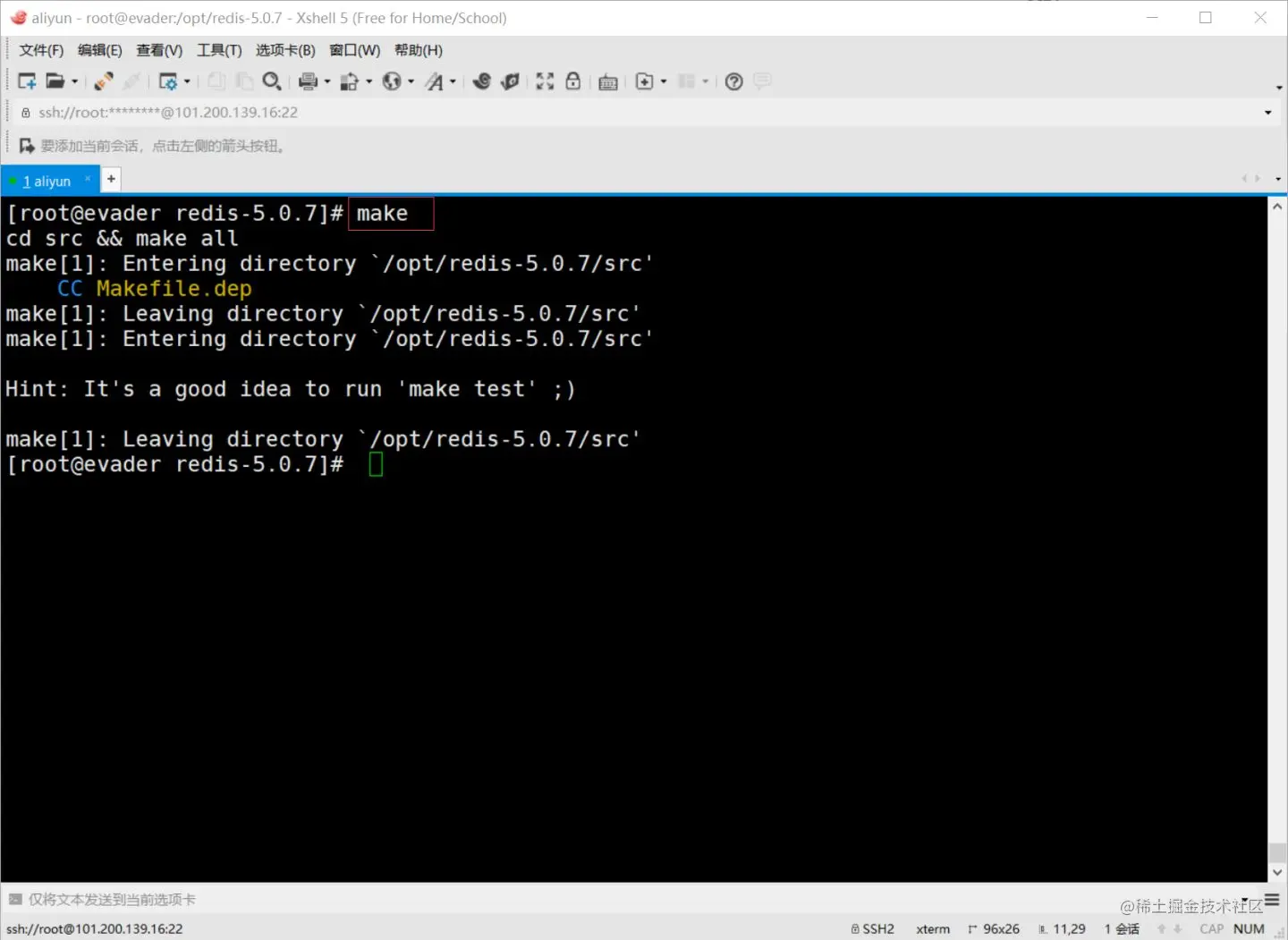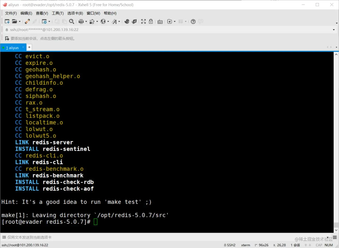 再次make,环境就能用了,程序里多了redis