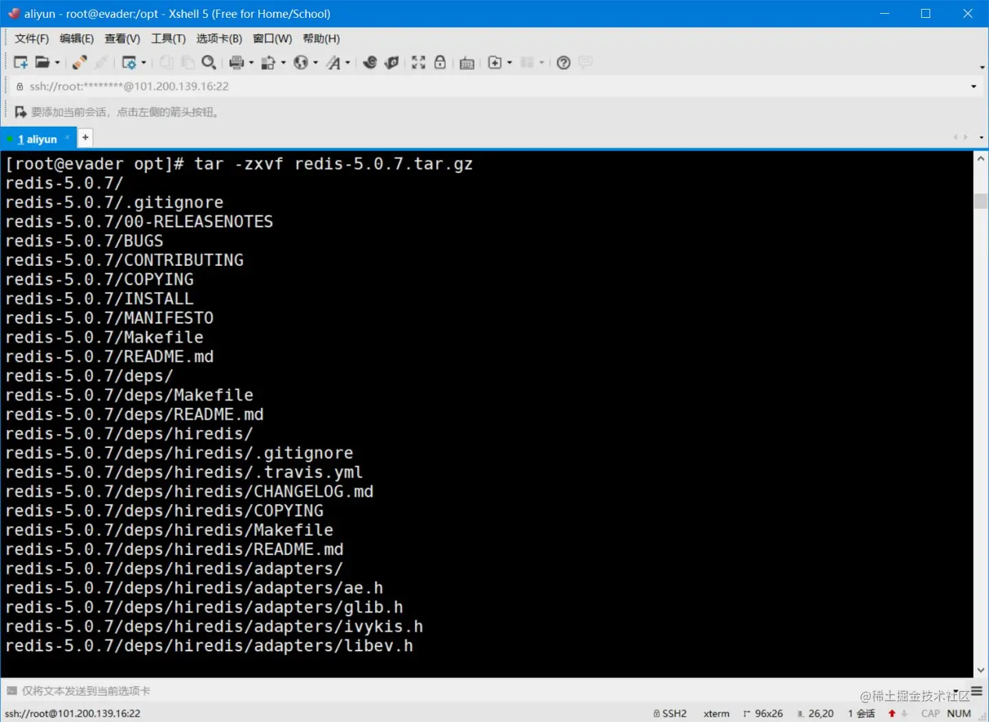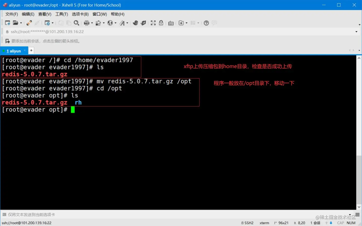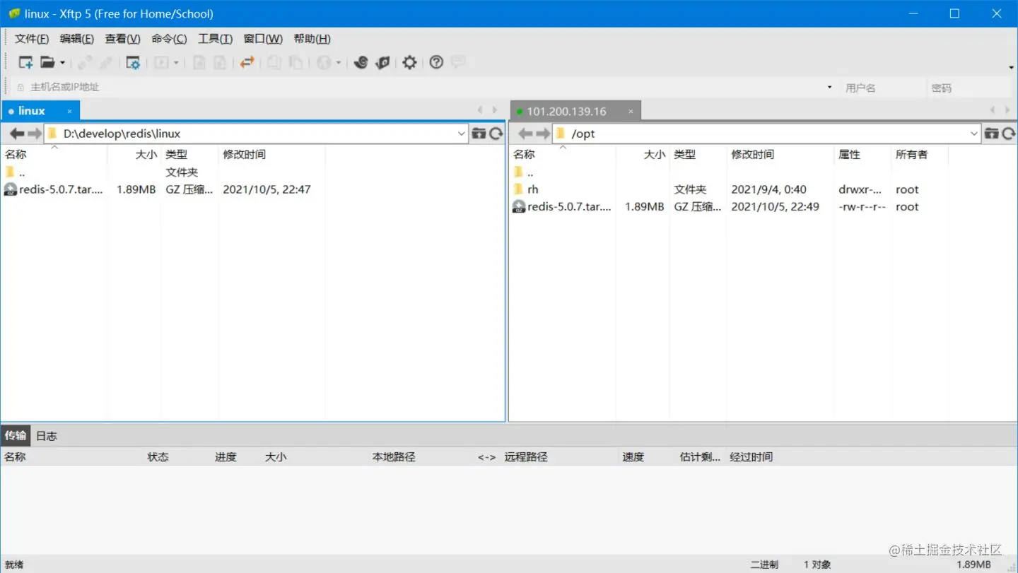 - 将下载的安装包上传到阿里云服务器(使用xftp或者UE)