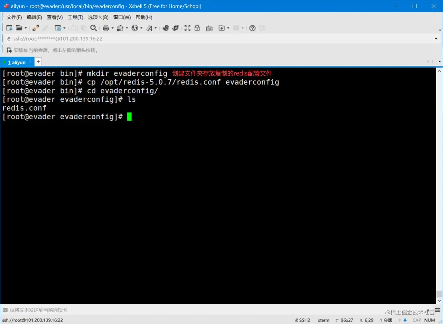 - 将redis的配置文件从安装目录复制到程序目录下(不改变原来的配置文件,方便自己修改配置文件出错后使用)