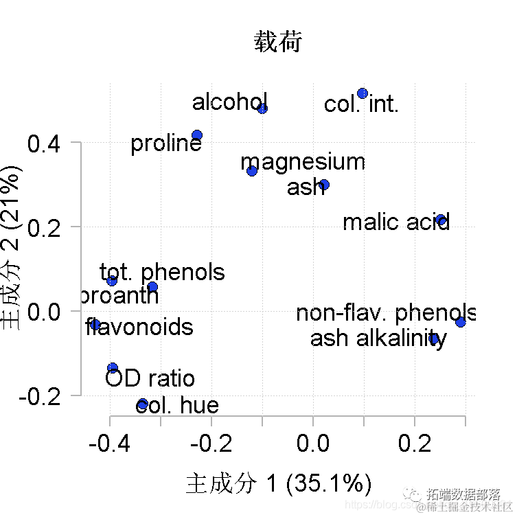 R语言主成分分析(PCA)葡萄酒可视化:主成分得分散点图和载荷图