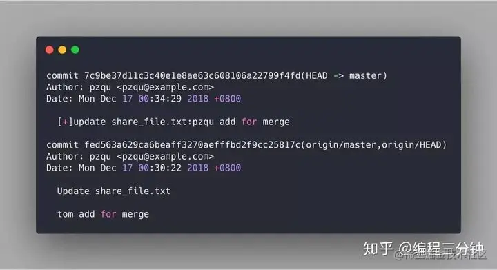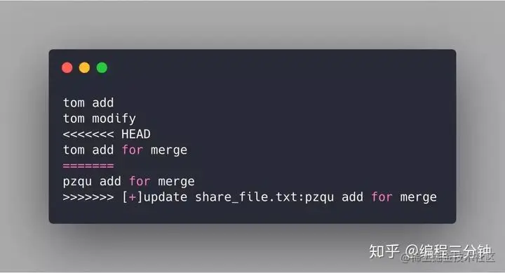 为了产生一个冲突,我在另一个地方向远程仓库提交了代码,更改share_file.txt文件,加了一行内容tom add for merge