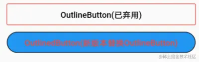 这两个组件名称很相似,前者以及弃用,官方建议用后者代替,这个按钮自带边框,类似于一个带有灰色边框没有背景颜色的FlatButton,OutlineButton与之前被弃用的的按钮相比,有个不同的参数,如下: