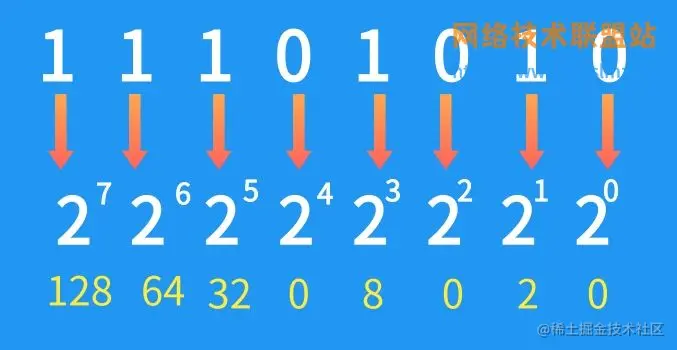 以此类推,最后二进制数11001010转为十进制就是0+2+0+8+0+32+64+128=234