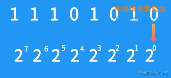 我们二进制转十进制的时候,一般都是从右往左看,第一个数字是0,那么算出来就是0.