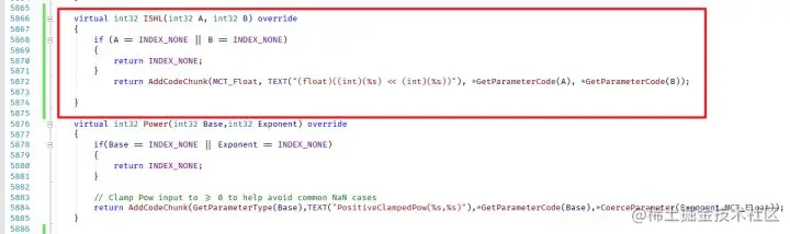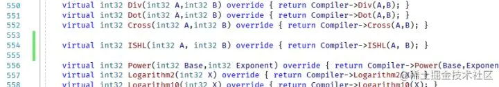 然后到 \Engine\Source\Runtime\Engine\Private\Materials\HLSLMaterialTranslator.h 里实现一下这个函数(这里的 HLSLMaterialTranslator.h 的行数和公版引擎可能不太对的上,前面有一些我的魔改内容,反正差不多是那堆函数里放进去就可以了)