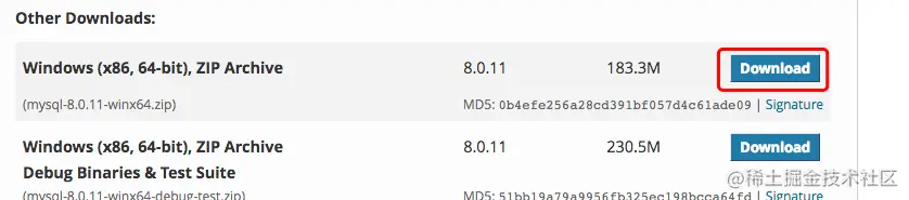 Windows 上安装 MySQL 相对来说会较为简单,最新版本可以在 MySQL 下载 中下载中查看(更详细安装:Windows 上安装 MySQL)。