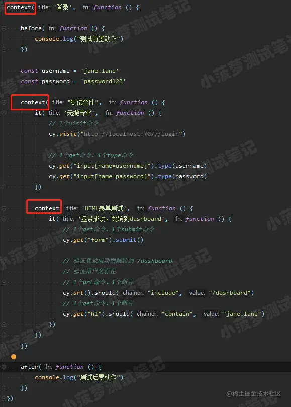- 例如 context() 是 describe() 的别名,其行为方式是一致的,直接用 context() 代替 describe() 也是可以的哦