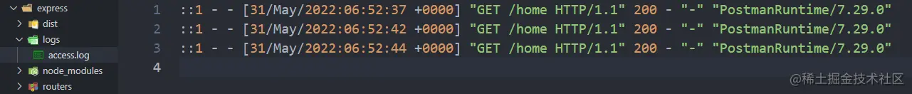 如果我们希望将请求日志记录下来,那么可以安装express官网开发的第三方库:morgan