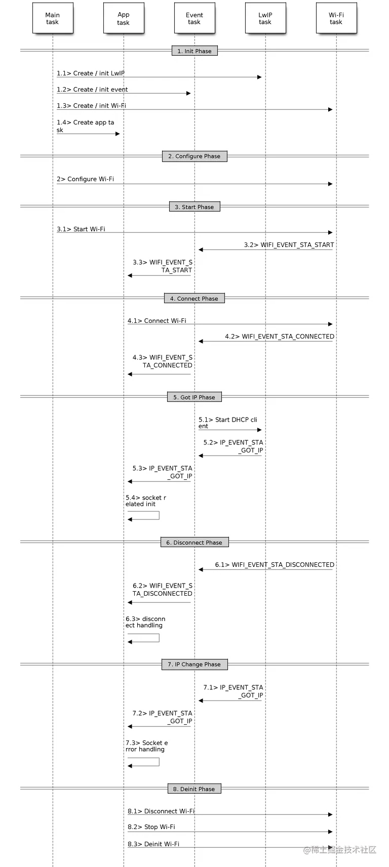 如果内部扫描/连接过程成功,将生成WIFI_EVENT_STA_CONNECTED。在事件任务中,它将启动DHCP客户端,该客户端最终将触发DHCP进程。