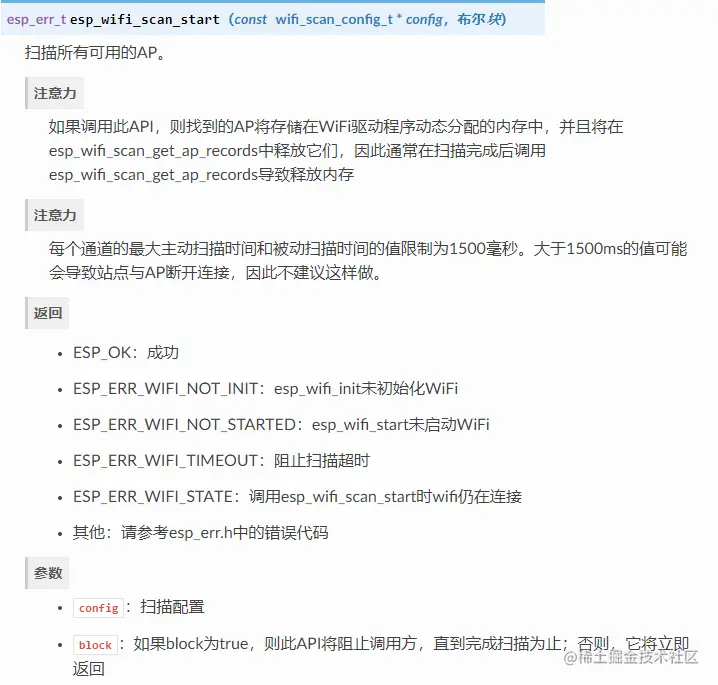 当前,esp_wifi_scan_start()仅在Station或Station + AP模式下支持该API。