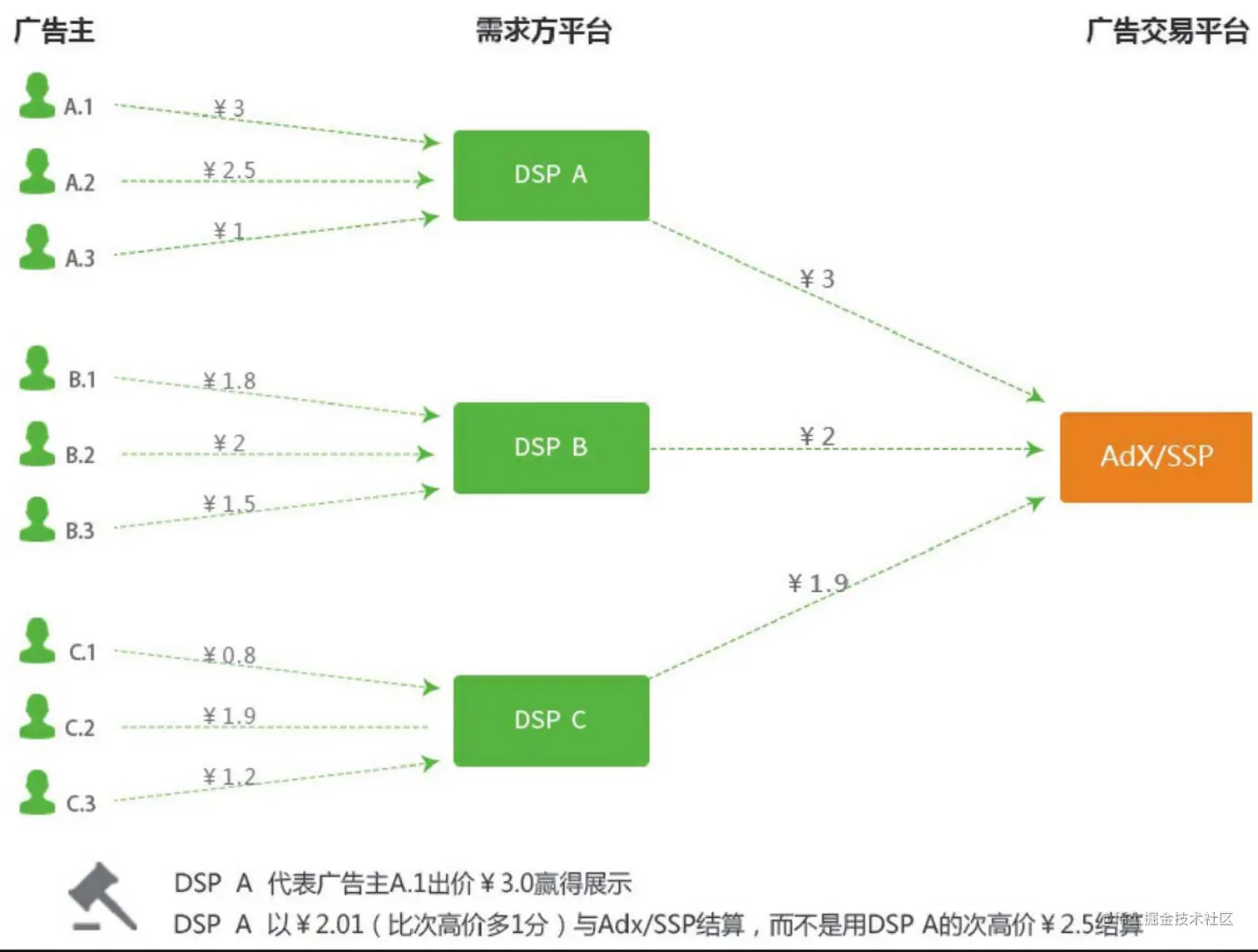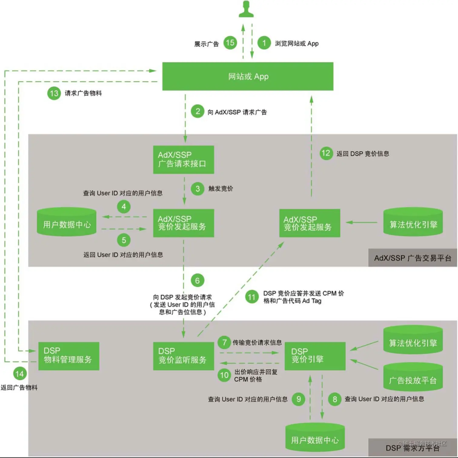 - 当市场产生了程序化交易时,供给方进化出了ADX,二需求方则用DSP与其对接来投放广告。