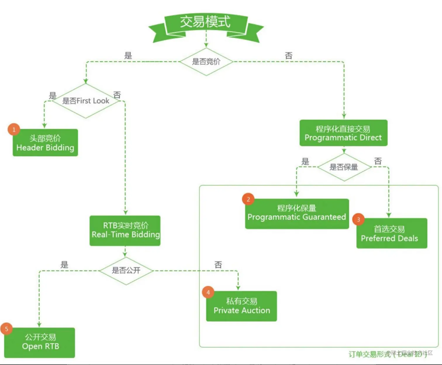 - 公开竞价(Open Auction,Open RTB),广告主可以在公开交易市场进行实时竞价购买剩余流量