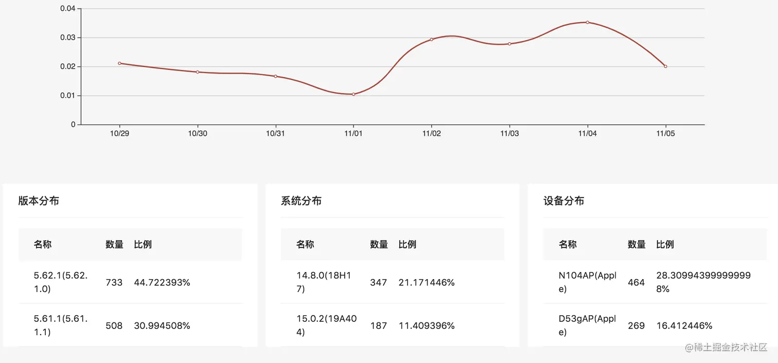 设备崩溃率 : 每个用户崩溃只计做一次崩溃,用崩溃次数/用户数 得到