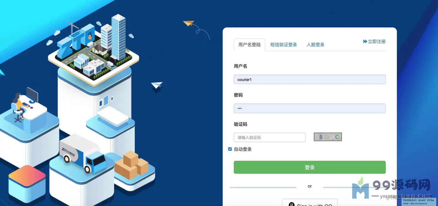 - 登陆与注册: 用户名密码、短信验证码、人脸识别登录、QQ登录