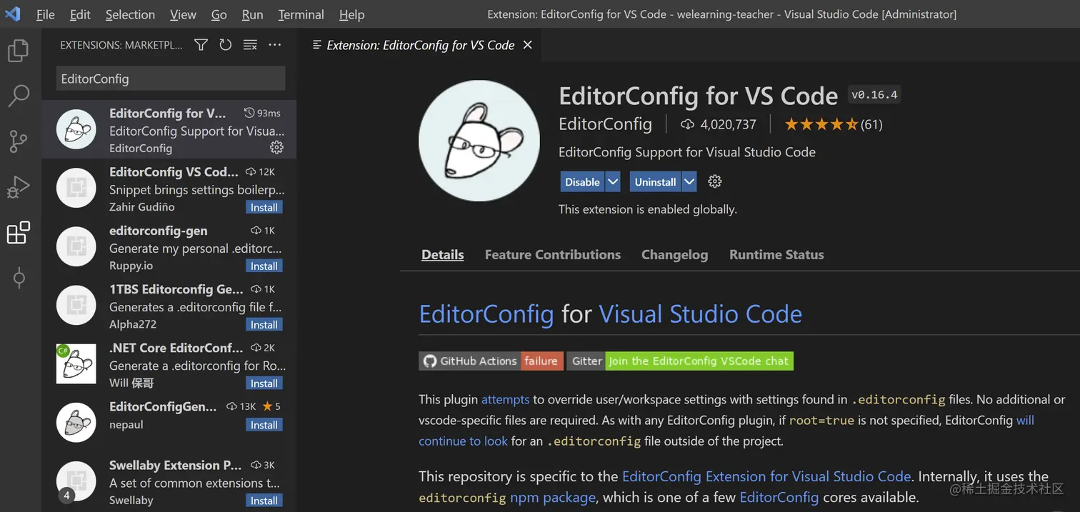 在VSCode的EXTENSIONS中找到git-commit-plugin插件,点击install进行安装。