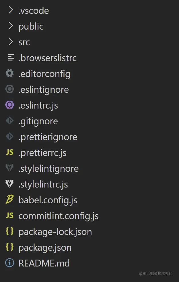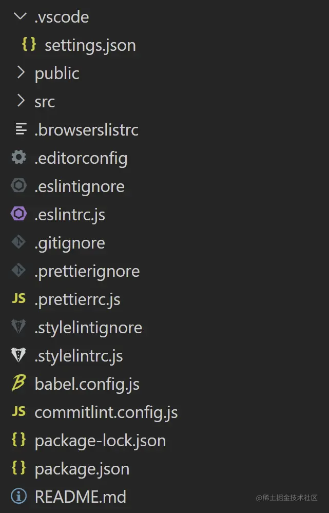 在介绍完Husky,Commitlint和Lint-staged之后,接下来,我们就可以将这几个工具结合起来,打造完整的Git检查工作流。下面给出了一份示例代码,其中,该项目采用了Vue-cli进行构建,下面是该项目对应的package.json文件。