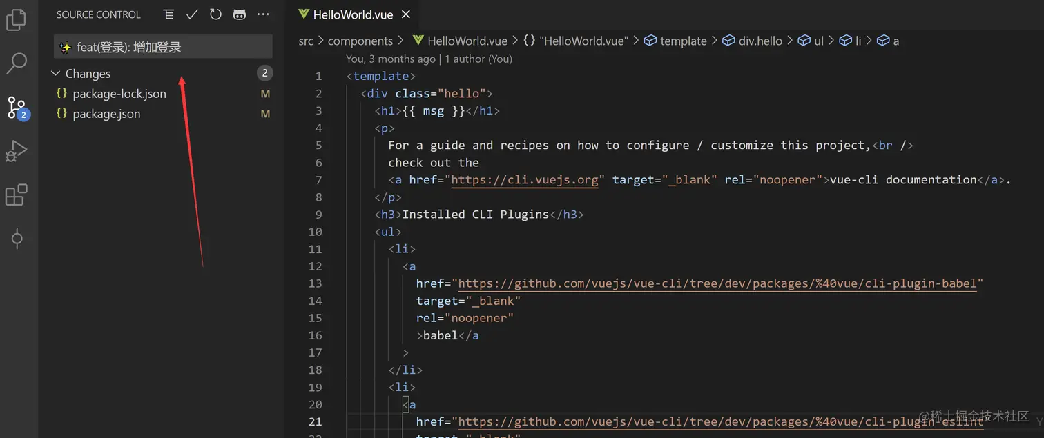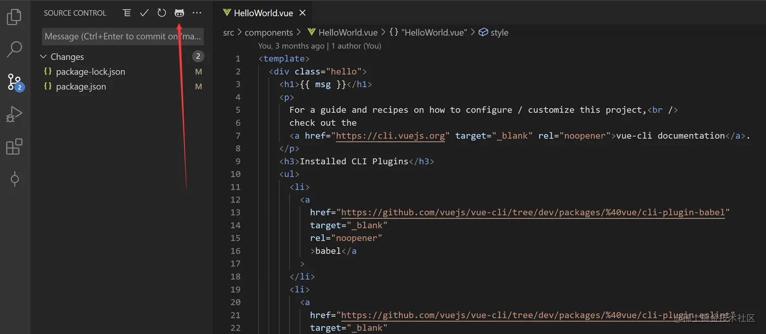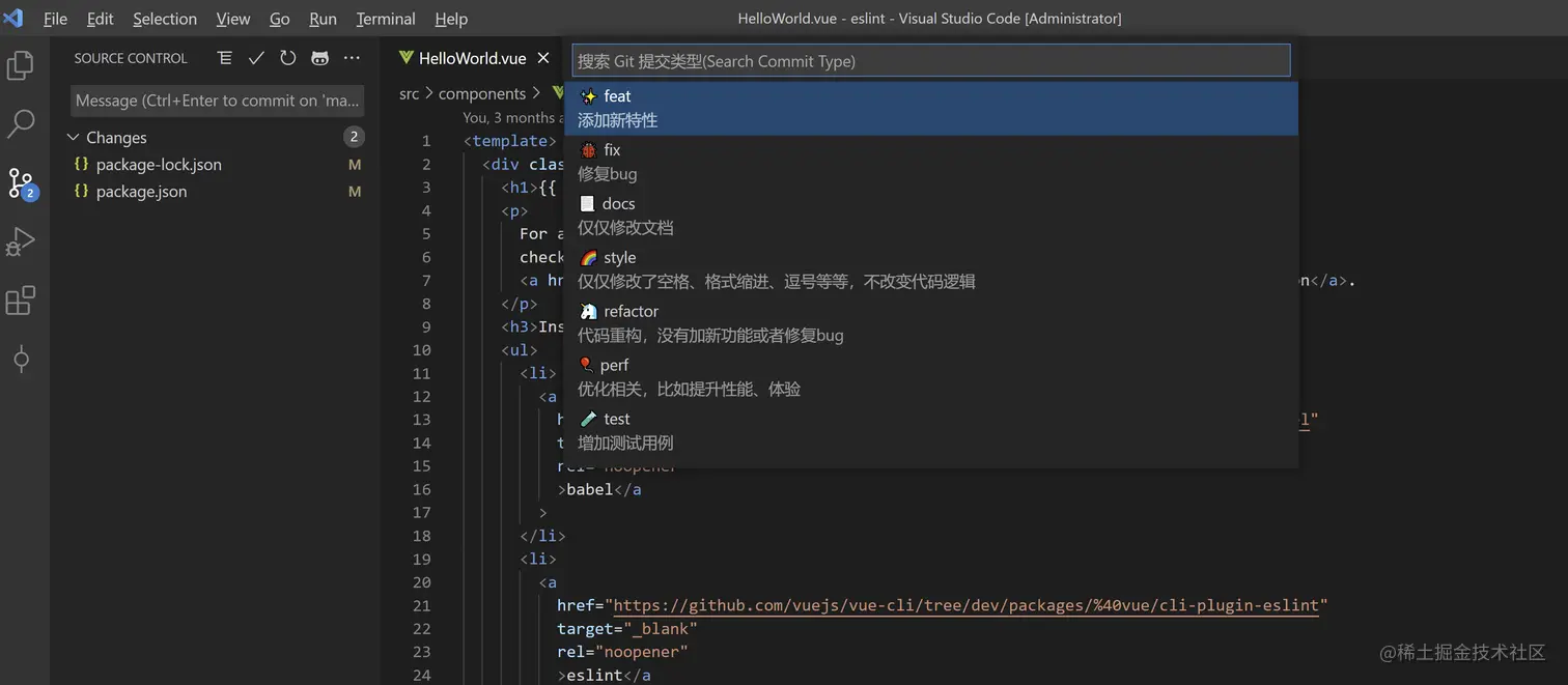 除了使用Commitizen信息交互工具来帮助我们规范Commit Message之外,我们也可以使用编译器自带的可视化提交工具。接下来,将会介绍VSCode可视化提交工具的使用方法。