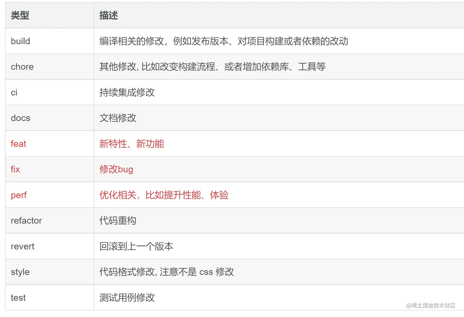 ****提交类型(type)用于说明此次提交的类型,需要指定为下面其中一个: