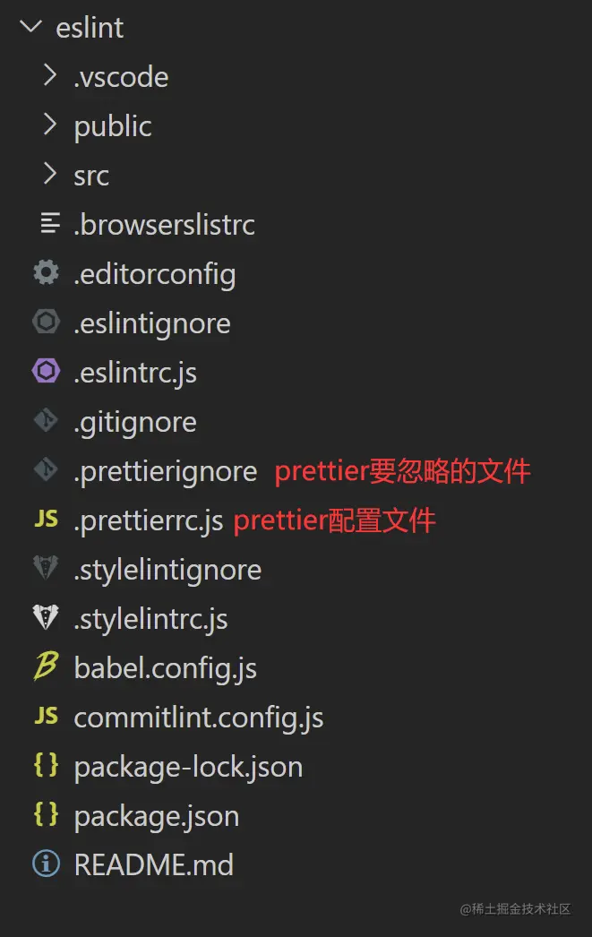 经过一系列一问一答的环节后,你会发现在你项目根目录已经生成了一个 .eslintrc.js文件,该文件主要用来进行ESLint的配置。