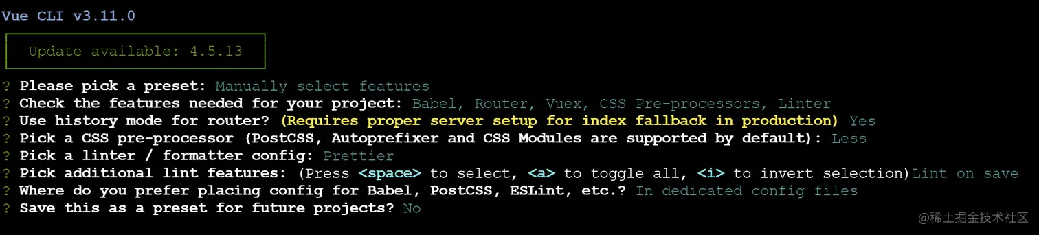 如果是采用脚手架如Vue-Cli创建项目,在创建项目时就可以选择安装ESLint,安装完成后,会自动在项目根目录生成一个.eslintrc.js文件,里面已经生成了ESLint的初始化默认配置。