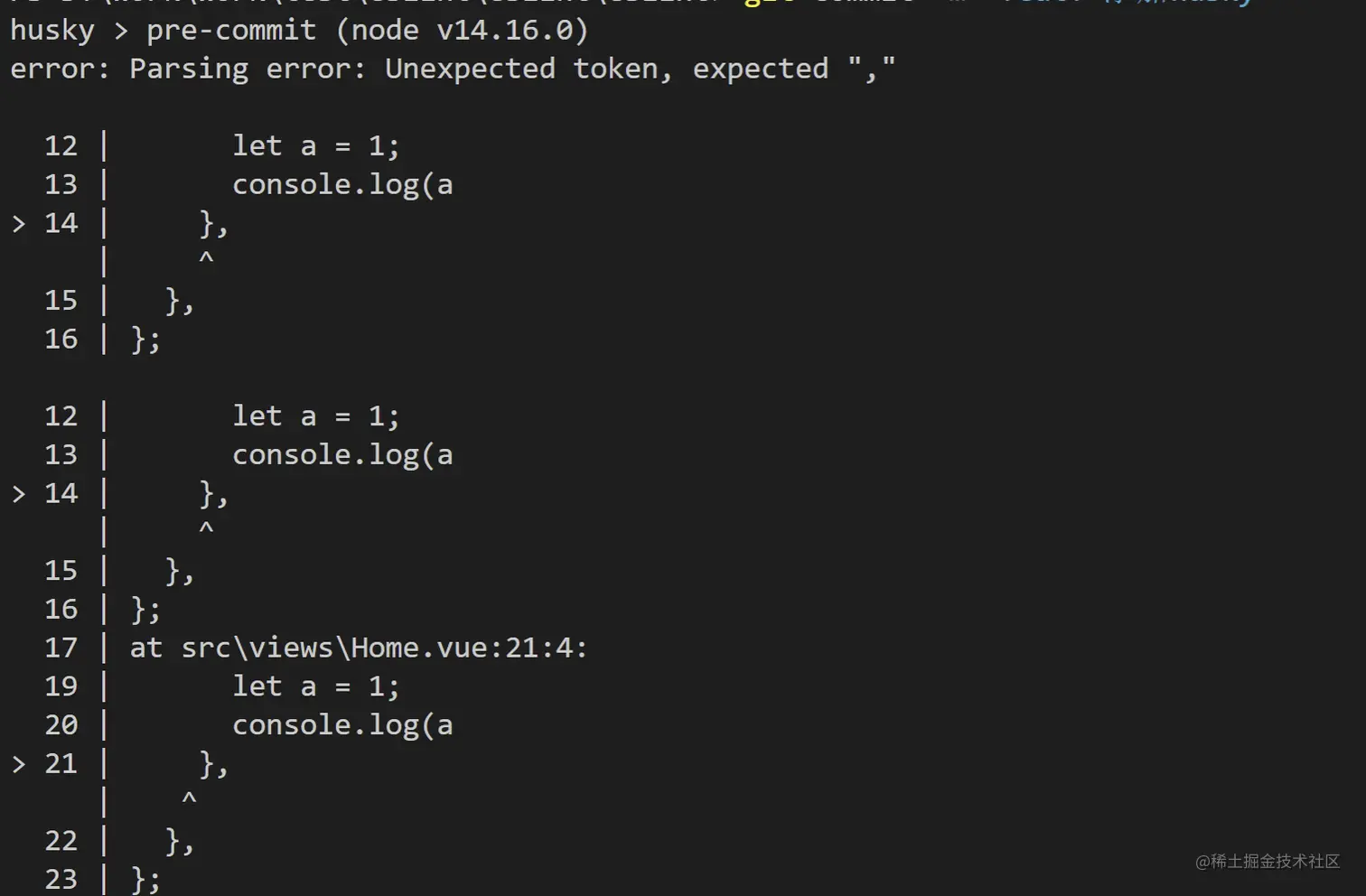 配置好package.json之后,当我们进行git commit提交时,首先将会触发pre-commit钩子,调用lint-staged命令,并且会对不同后缀的文件执行不同的检查。接着,还将会触发commit-msg钩子,调用commitlint对我们的提交说明进行检查。如果其中一个无法通过检查,将无法提交。