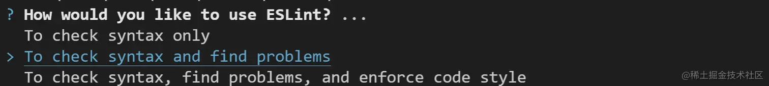 - 安装完成后,可以执行下面命令进行ESLint的初始化配置。