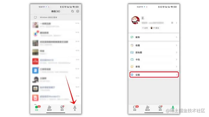 步骤1.启动你的手机微信后,点击进入【设置】;