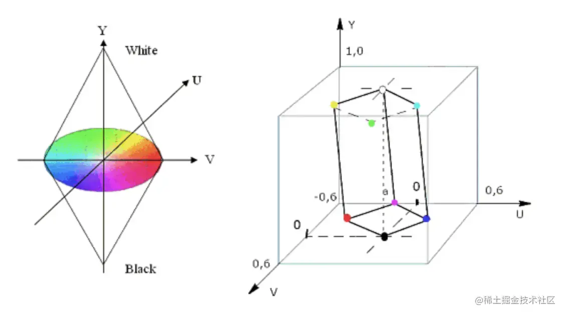 YUV模型作为RGB模型的变形形式,其常用于视频、电视领域的色彩表示。由于在视频及电视领域中,对于色调和饱和度的指标相对更为关键,因而使用U+V来表示色度,使用Y来表示明亮度。