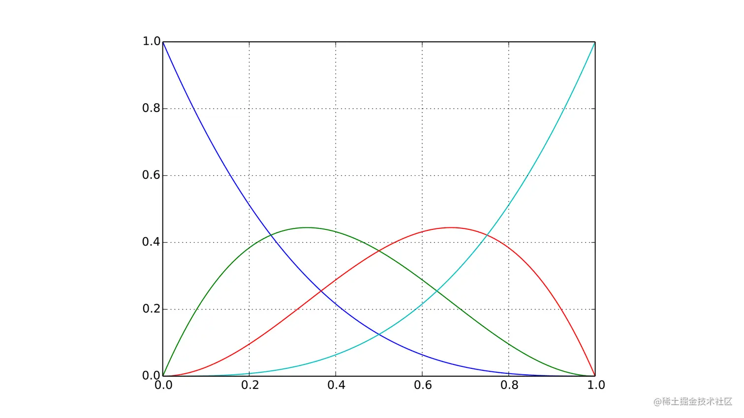 在对色彩计算过程中,使用贝塞尔曲线来处理两个数据值也是一项十分重要的手段,可以更加接近对于色彩体系的构建和对真实色彩世界的拟合。