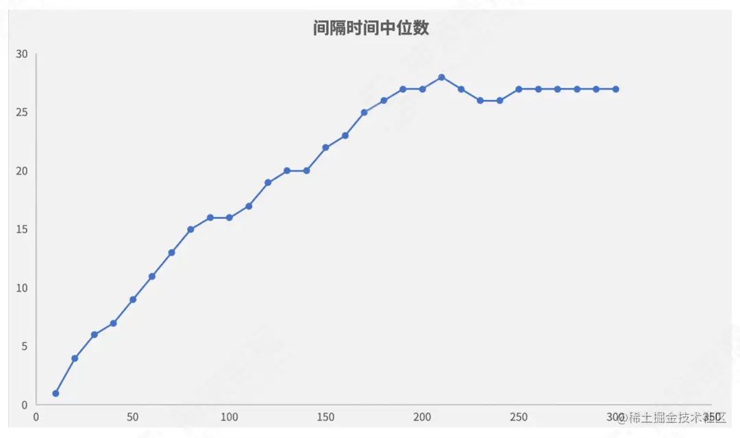 在定义用户生命周期标准的时候,我们可以通过用户启动产品的时间间隔的趋势来判断。某电商客户时间范围为 10-300 天,其用户启动产品的时间间隔在时间范围大于 250 天往后趋于 27 小时。也就是说,只要超过 250 天后,无论时间范围如何扩大,用户使用产品的情况基本不会有太大变化。
