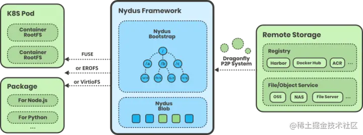 本文将从 Nydus 架构回顾、RAFS v6 镜像格式和 EROFS over Fscache 按需加载技术三个角度来分别介绍这一技术的演变历程,并通过对比数据展示了当前方案的卓越性能,希望大家能够尽早享受到容器启动飞一样的体验!