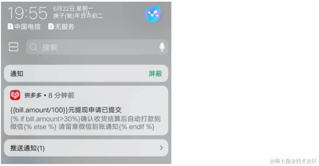 推送消息中包含了不正确的内容(如下图),此类问题一般是后端服务错误导致的。