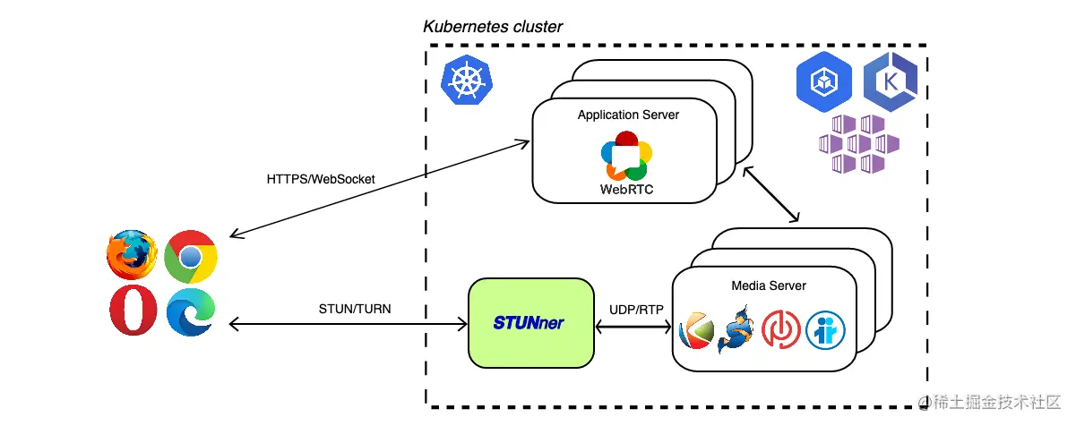 目前大多数内网穿透服务都依赖于 STUN 服务或者 TURN 服务,但这些服务大多数都是公用的,即使是私有化部署,也没法迁移到 Kubernetes 的环境中,因为 Kubernetes 的 Ingress 对这些协议的支持都不太友好。STUNner 这个项目可以看成是 STUN 和 TURN 服务专属的 Ingress Gateway,你可以在 Kubernetes 中随意部署和扩展 STUN 服务或者 TURN 服务,STUNner 会将 WebRTC 客户端的流量中继到内部的服务中。