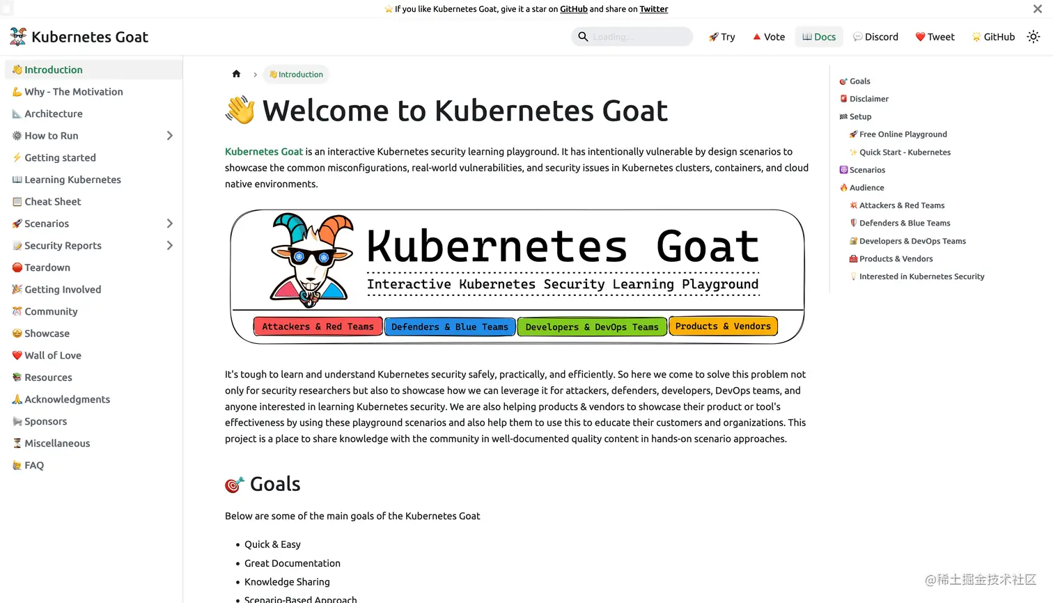 Kubernetes Goat 是一款针对 Kubernetes 安全的学习、测试和练习工具,提供了一个故意暴露安全缺陷的 K8s 环境,可以帮助对安全感兴趣的小伙伴学习和实践 Kubernetes 安全。