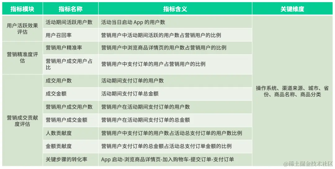 电商活动大部分以促成用户交易为主要目标,因此活动指标一般会聚焦在交易量、交易额。