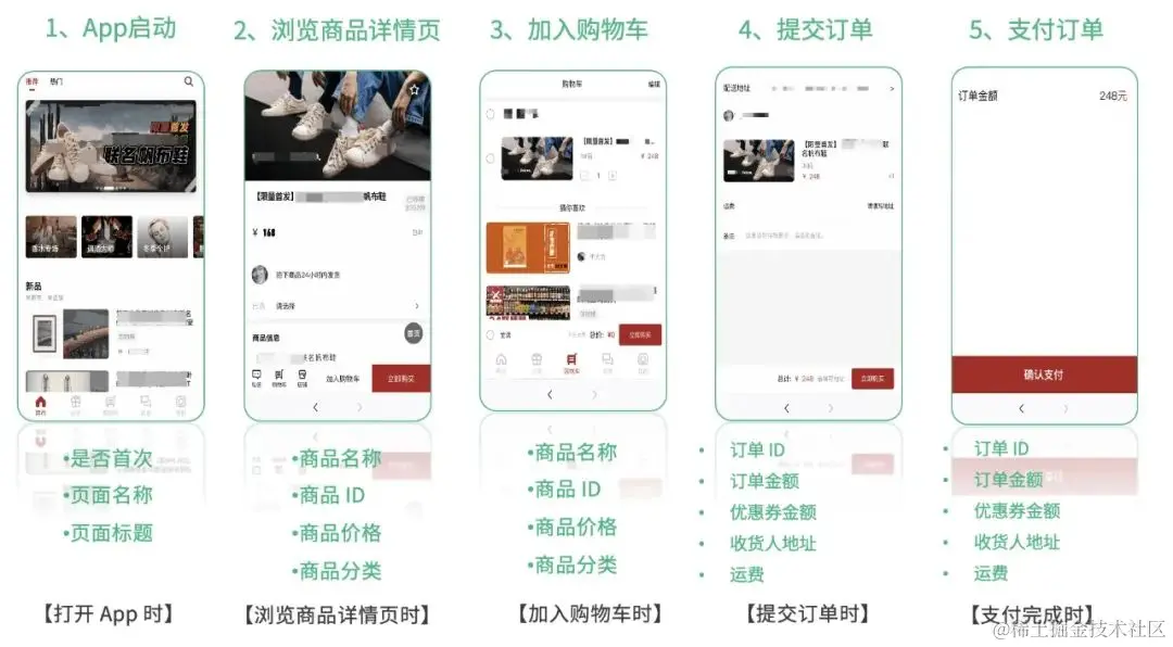 其中,上图所涉及的核心业务转化流程,是以电商产品中核心转化路径作为例子: