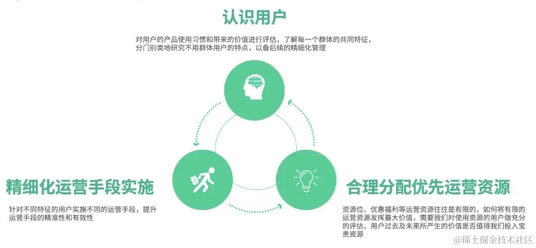 当我们策划活动时,活动预算往往是有限的,比如说本年度 618 大促活动预算是 10 万元,用户量级为 5 万人,此时我们该如何去分配资源,来达到效果最大化呢?我们需要认识用户、了解不同群体的特征,合理分配优先运营资源,以此来针对性制定营销策略,实现精准营销。