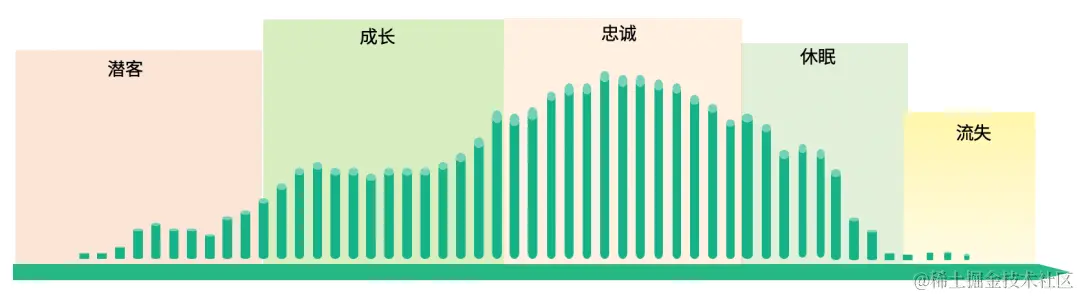 在用户全生命周期中,用户在不同阶段的特点是不一样的,因此可以根据不同的特点来设计运营动作以此来提升用户的转化及留存,此处会讲解用户生命周期的划分维度且基于不同特点所得出的运营策略。
