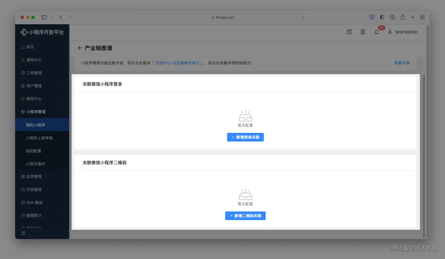 4、通过「第三方管理」功能,关联微信小程序登录应用,App便可以复用(不改一行代码)微信中的用户授权登录能力。换句话说,通过关联微信小程序登录功能,即使是在第三方小程序或 App 中,用户需要登录时可以直接打开微信小程序完成登录。