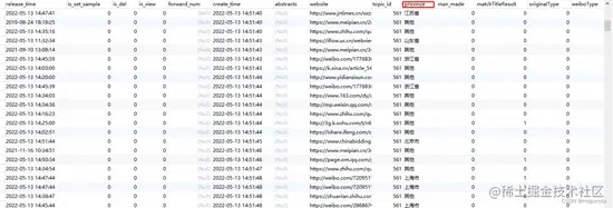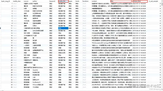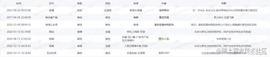 搜索完毕后如下图: es索引库中media_link(环节)字段总共有微博、移动客户端、微信公众号、网站、视频等几类数据,时间就是该环节第一次出现的时间。我们称为首发媒体(环节)。
