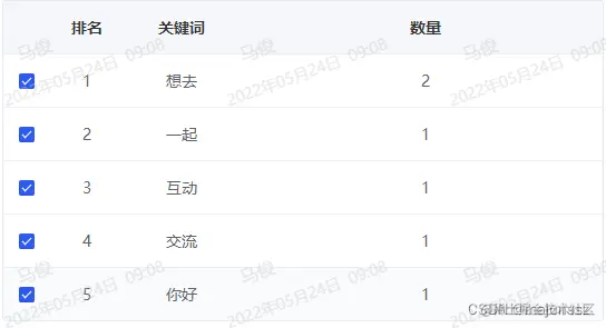 搜出来如下图 ,关键字就是所有内容中出现频率最高的词语,数量则是该词语在所有内容中出现的次数。