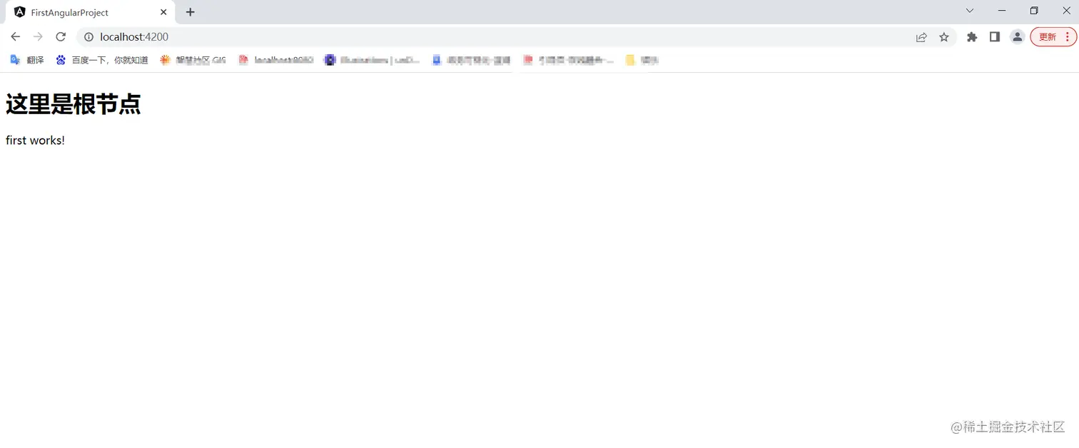就可以看到新注册的FirstComponent组件了, 默认的内容是 'first works!'