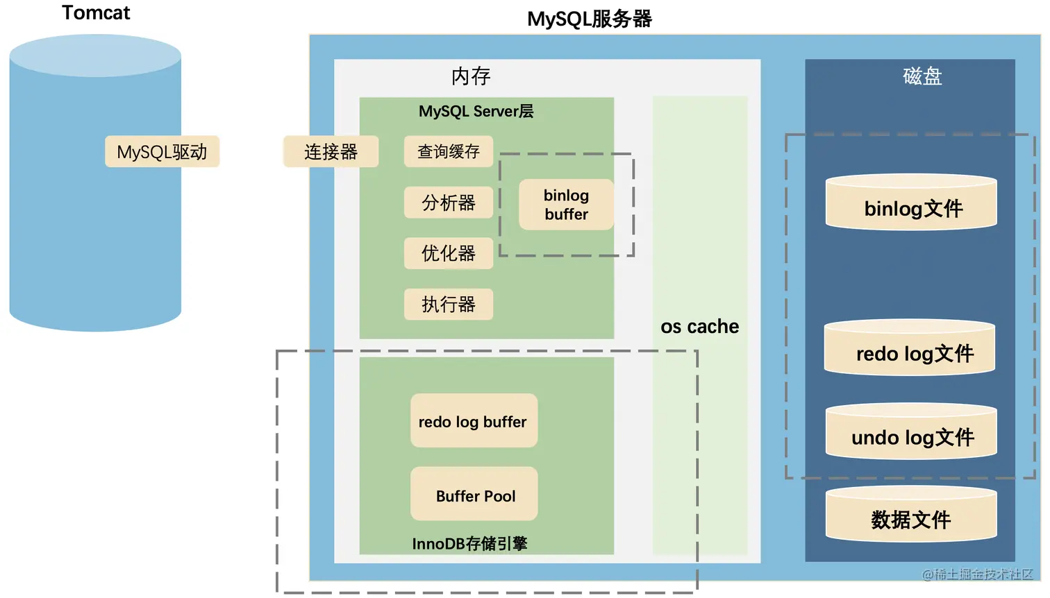 在MySQL”分析需求,实现方案“的过程中,还夹杂着内存操作和磁盘操作,以及记录各种日志。