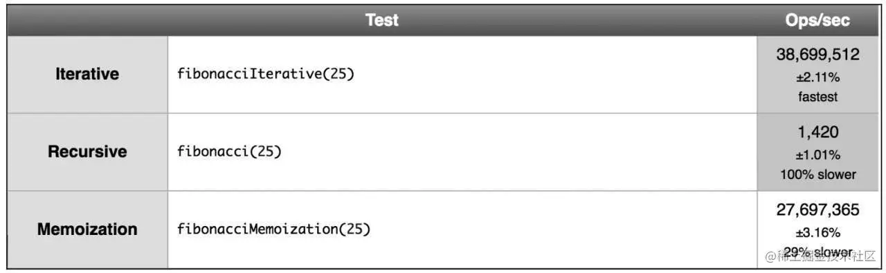 迭代的版本比递归的版本快很多,所以这表示递归更慢。但是,再看看三个不同版本的代码。递归版本更容易理解,需要的代码通常也更少。另外,对一些算法来说,迭代的解法可能不可用,而且有了尾调用优化,递归的多余消耗甚至可能被消除。