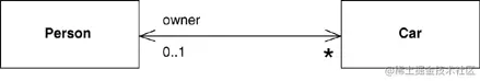 双向关联是一对性质,它们从两个方向连接在一起。例如,Car有性质owner,Person有性质cars。使用双向箭头更容易突出双向连接的关系。编程语言实现双向关联关系的维护比较复杂,一般在关联的一端维护,如果是1对多的关联,在多的这一端维护。