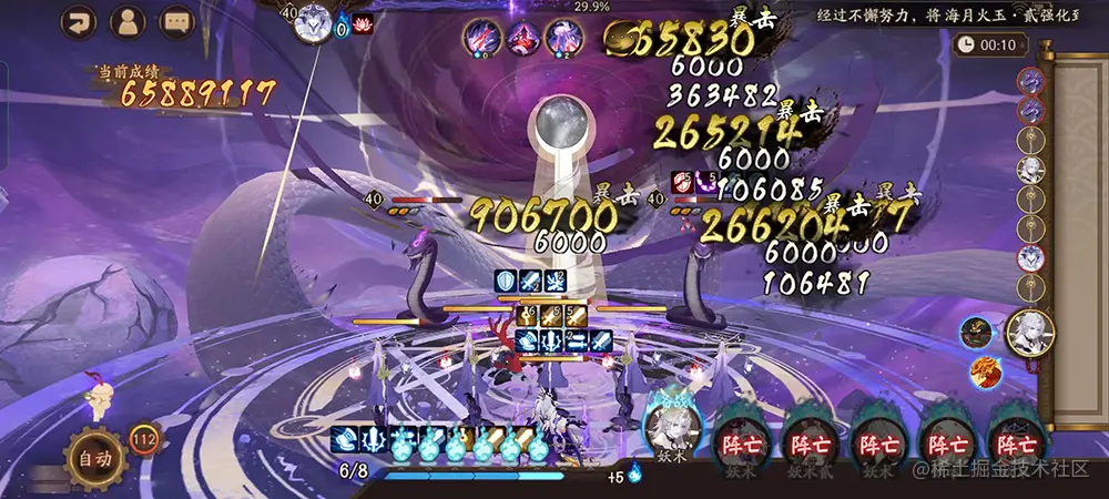 无论是应用也好、游戏也好,文字 和 图片 是永恒的显示主体。人类文明是依赖于文字进行传承的,文字的最大价值在于传递信息。如下是阴阳师的战斗截图,其中角色的伤害、当前的成绩、鬼火数量、是否暴击、式神存活状态等,都依赖于文字来显示,向玩家反馈交互的信息。