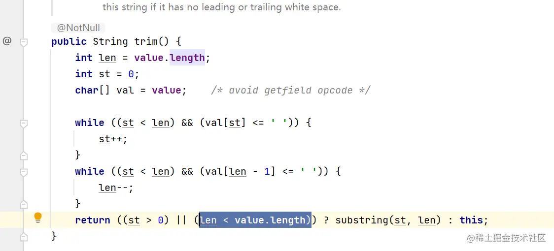 对于trim就没啥说的了,去除了前后的空格,就是先判断前后空格的位置,然后通过subString来进行剪切,贴张图吧;