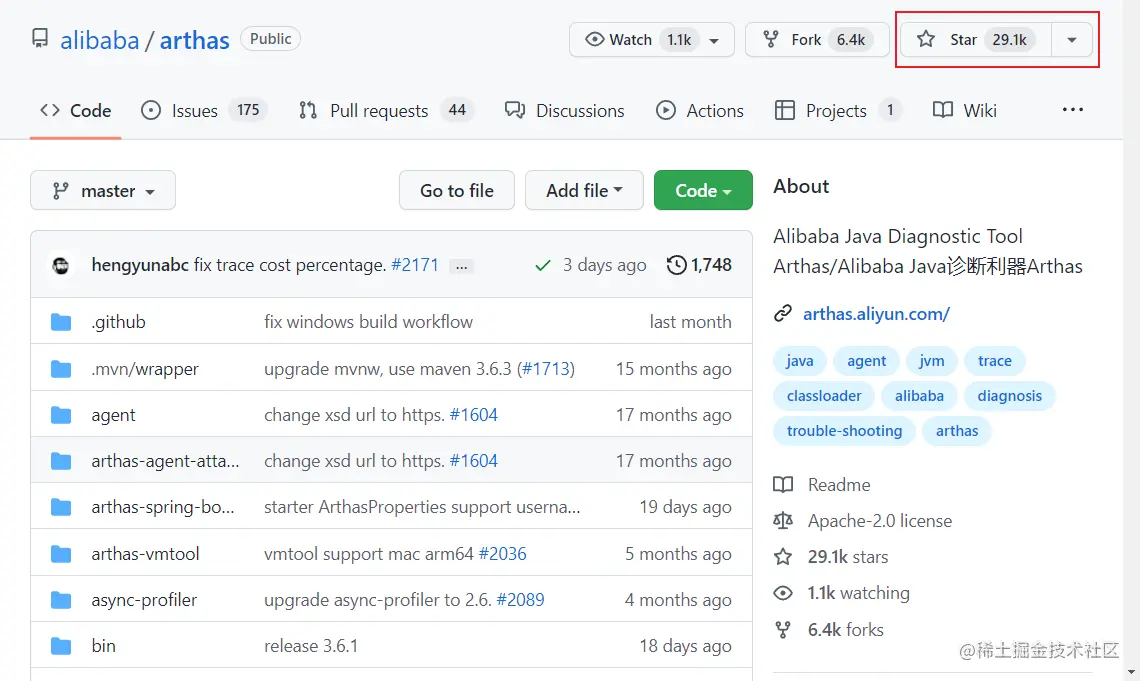 Arthas是Alibaba开源的Java诊断利器,深受开发者喜爱,目前在Github上已有29K+Star。它采用命令行交互模式,同时提供丰富的 Tab 自动补全功能,进一步方便进行问题的定位和诊断。