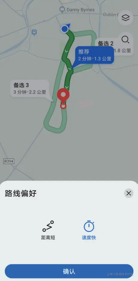不仅如此,地图服务还可以根据路况信息,提供距离短和速度快这两种可供选择的路线偏好,极大提升用户体验。