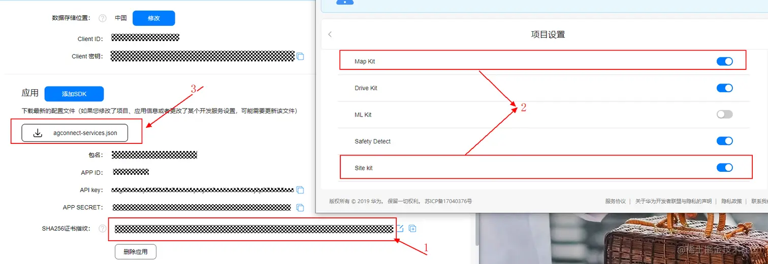 - 创建应用,添加sha256,开启map/site开关,下载json文件